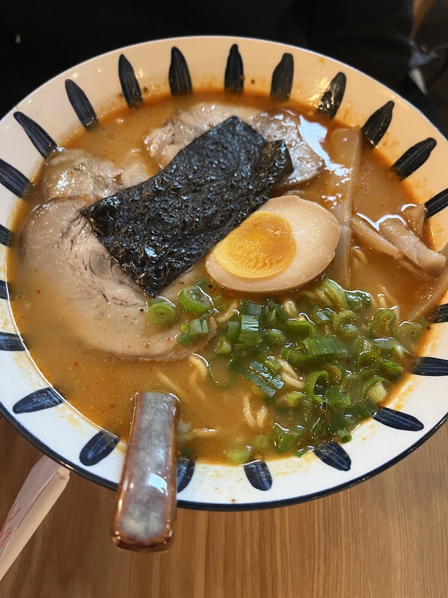 The menu balances comfort and creativity, making it easy to find something familiar while still feeling excited to try something new. One of the standout choices is the Spicy Tonkotsu Ramen. The broth is rich and satisfying, with a slow-building heat that keeps each bite interesting. It’s the kind of dish that feels hearty without being heavy, perfect for lingering at the table a little longer.