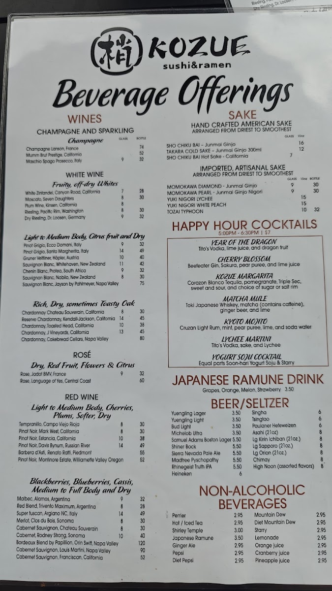 Dessert lovers will appreciate the selection of Mochi, rich cakes like Chocolate and Cheesecake, as well as indulgent Fried Ice Cream with flavors like Fried Green Tea and Fried Mango. Whether you're in the mood for sushi, ramen, or something sweet, Kozue Sushi & Ramen has a menu that promises to satisfy every craving, all at great value, especially during Krazy Hour!